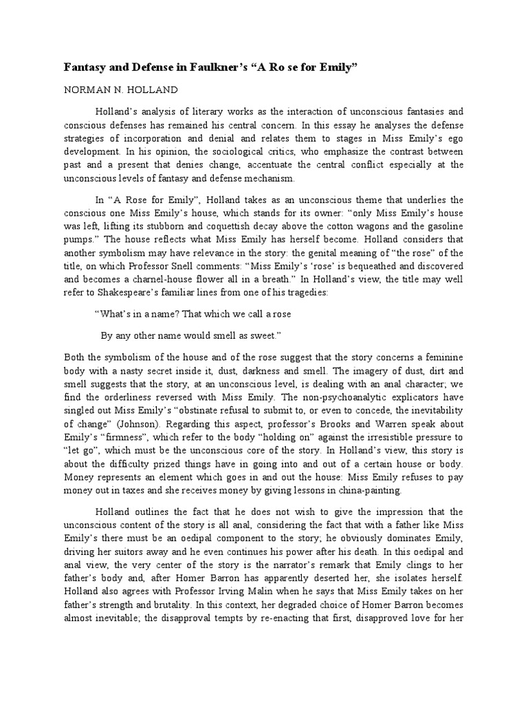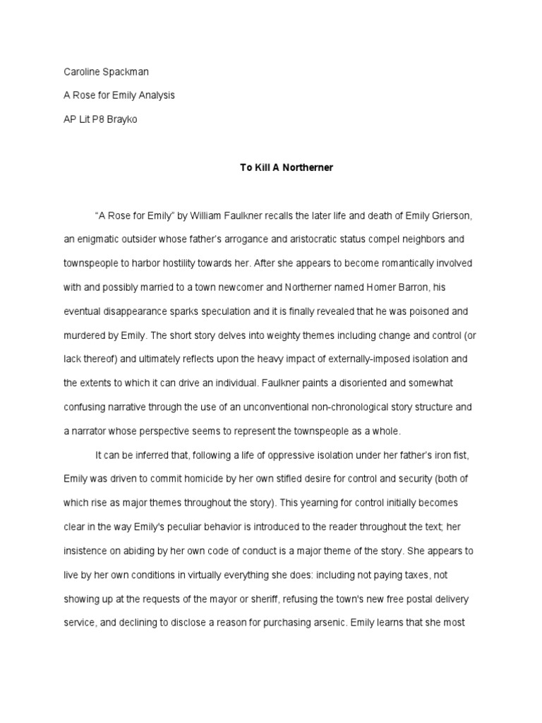 A rose for emily analysis. An unnamed narrator who seems to be speaking on behalf of the group tells us that when miss emily grierson died the whole town attended her funeral. Work cited faulkner william. Miss emily was born during the civil war to a proud noble family. A rose for emily analysis a rose for emily displays many hallmarks of the southern gothic subgenre of literature including themes and motifs of isolation and decay.
