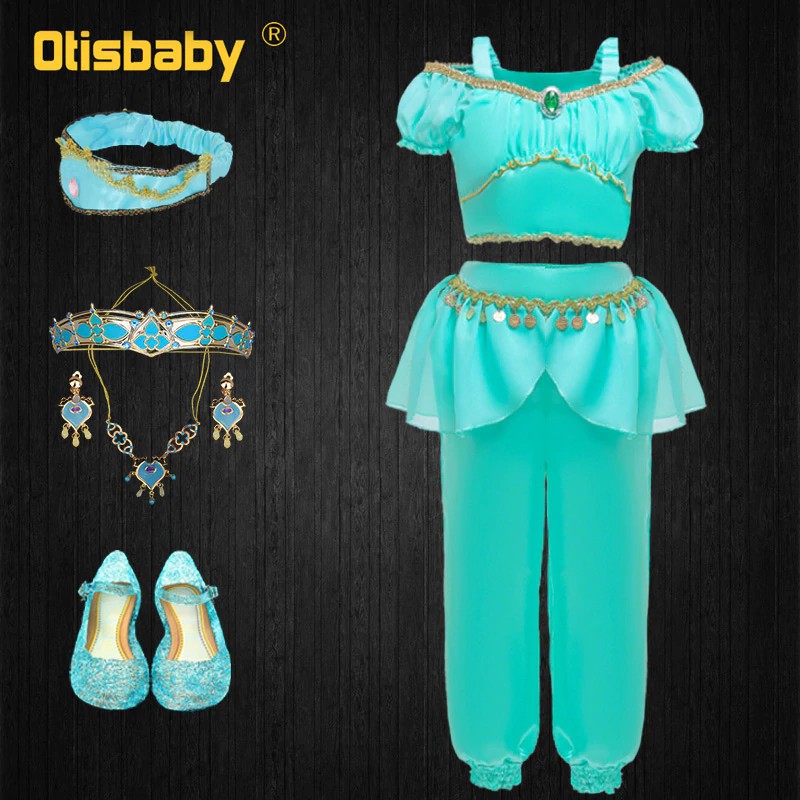 Aladin and jasmine costumes. Aladdin disney jasmine costume teal gold peacock outfit 2piece pants costume. Spirits will soar on a magic carpet ride when baby wears this enchanting jasmine costume. Mesh off shoulder front with cameo jeweled magic lantern brooch with glitter. Today we like to introduce the costumes collection of aladdin 2019 film such as jasmine costume 2019 aladdin costume genie costume and so on.