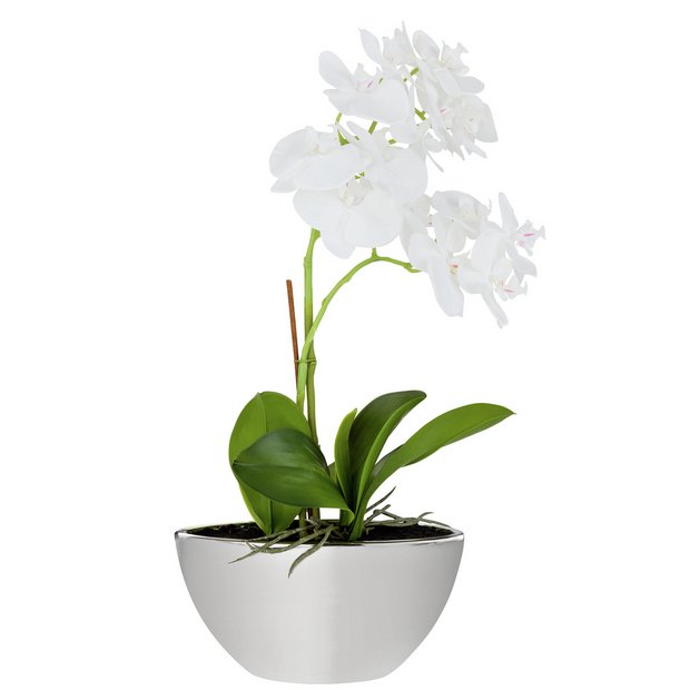 Corsage creations artificial real touch potted white orchid plant in moss style pot x 58cm. Orchids artificial plants. The silk orchid plant phalaenopsis in a decorative vase is a simple and elegant yet colorful idea to decorate your homes with. Silk orchids flowers plants trees so real youll water them.
