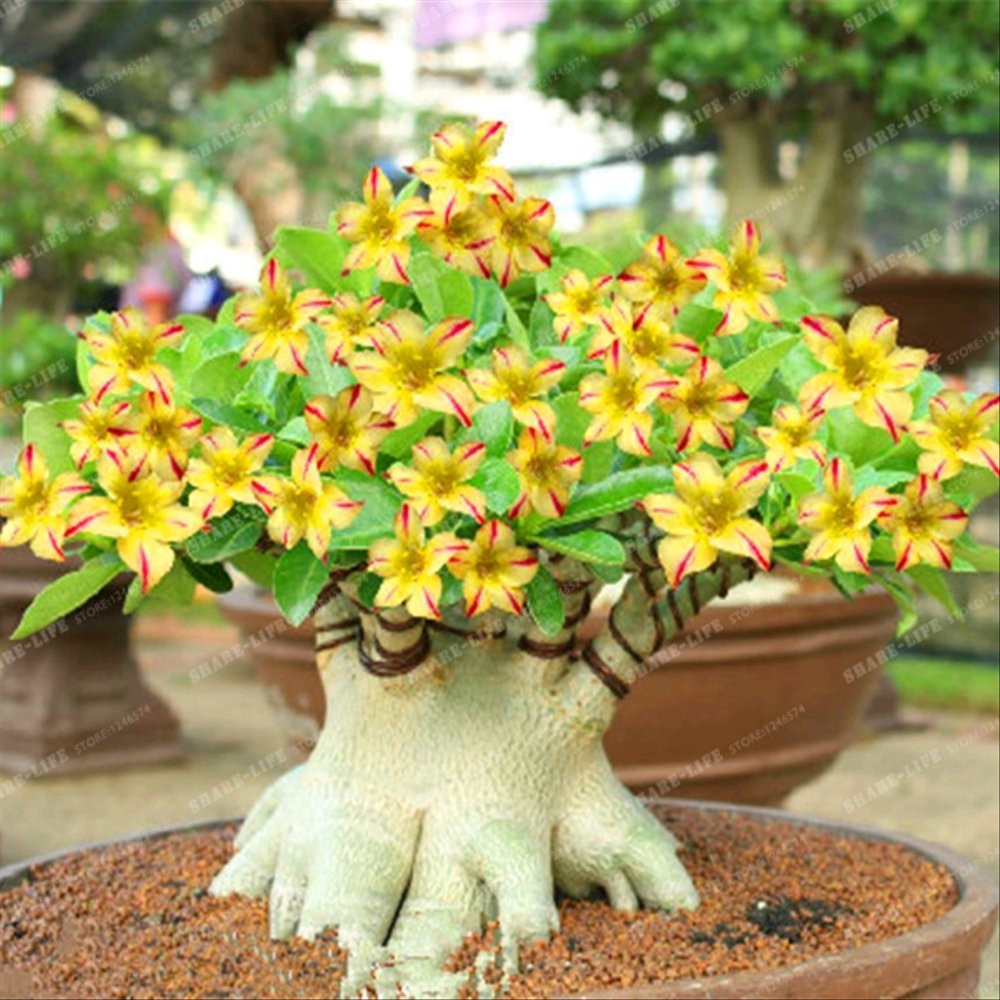 Desert rose plant. In the philippines due to its resemblance to the related genus plumeria and the fact that it was introduced to the philippines from bangkok thailand the plant is also called as bangkok kalachuchi. Adenium obesum is also known as the desert rose. A tropical evergreen succulent shrub from the dogbane family the desert rose is a popular garden or indoor plant with striking 2 3 inches wide tubular pink or reddish flowers. Thick exposed roots give the plant a distinct look.