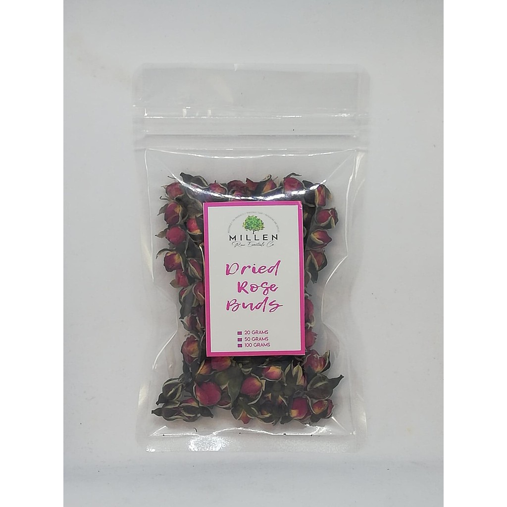 Dried rose buds. They are known for having relaxation properties. Pink rose buds our beautiful dried pink rose buds is any crafters dream. Offer 150g supplied for the price of 100g. There may be some leaves stems and petals in the bag.