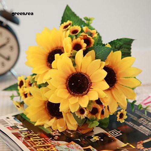 Make offer 14head fake sunflowers artificial silk flowers bouquet home wedding table decors artificial floral arrangement flower sunflower home decor green vase 17inch.
