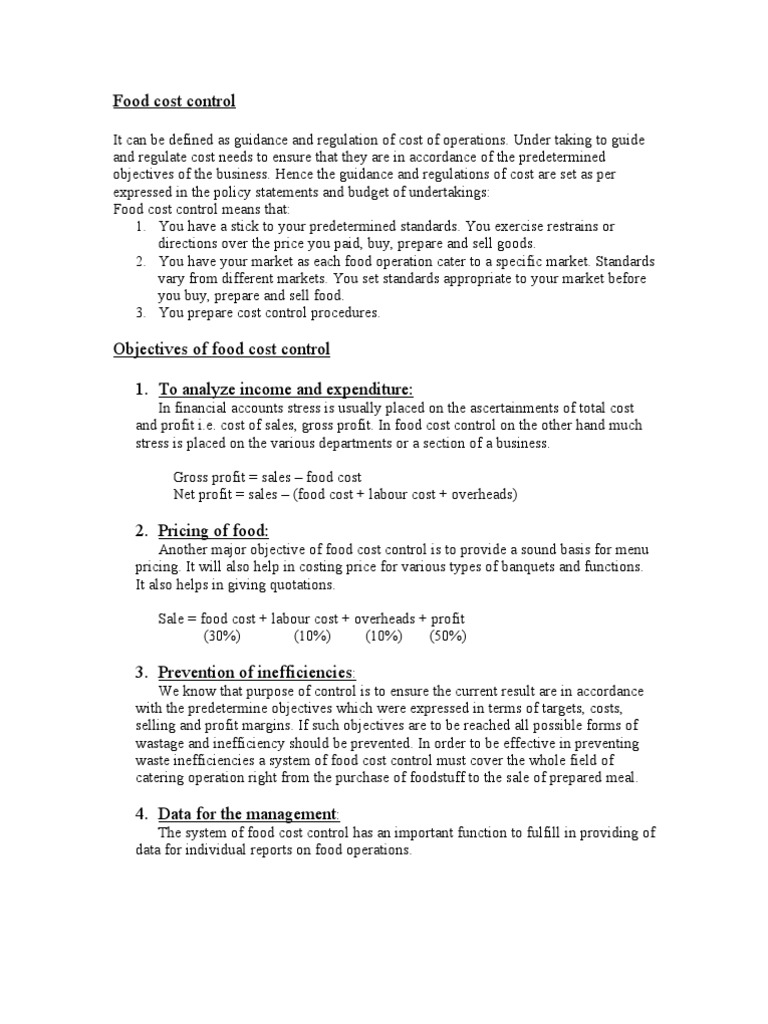 While labour cost is relatively easy to control it is often not the case with food cost. The idea behind food costing is to determine what level of cost must be maintained in order for the business to offer. Instead it accounts for the total costs and sales associated with each dish or menu item. Food costing is an essential tool in determining whether food costs targets are being met.