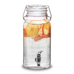 Glass beverage dispenser with spigot. Of your favorite beverage. Crafted from glass it showcases a clear design with a spigot and includes a flavor infuser so you can experiment with new mixes. Premium glass constructed of premium grade ultra durable glass the dispenser will be secure and balanced for indoor and outdoor use. This container has no drip stainless steel spigot for a sturdy and mess free dispenser.