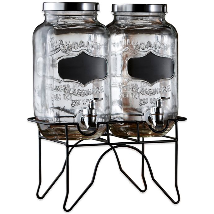 Product title estilo glass mason jar double beverage drink dispenser on metal stand with leak free spigot 1 gallon each average rating. Shop for glass beverage dispenser online at target. Free shipping on orders of 35 and save 5 every day with your target redcard. Each drink dispenser stand is made durable to securely hold your drink server.