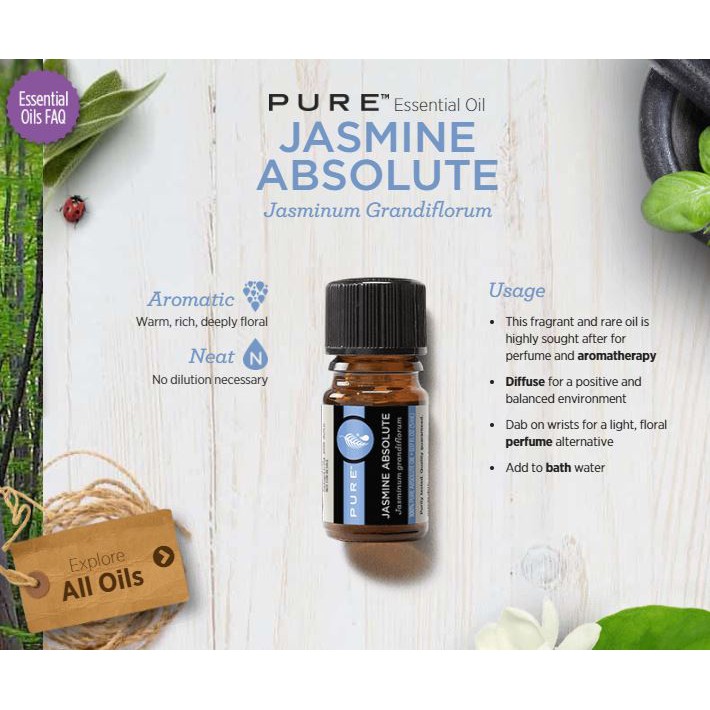 Jasmine absolute oil. Jasmine absolute is used within precious fragrancing applications for both men and women. Jasmine absolute oil helps support the relief of nervous tension depression headache heat rashes skin pigmentation sunburn sexual dysfunction body pain uterine issues menstrual problems laryngitis anxiety and lethargy. Jasmine blossoms cannot be effectively steam distilled so they are extracted by solvent to create a highly concentrated absolute. Alcohol is added to pull the essence from the fat.