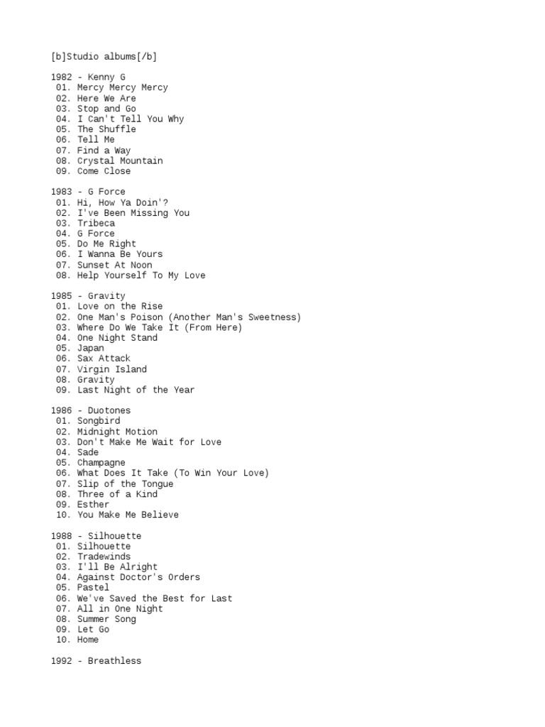 Playing kenny g breathless kenny g jasmine flower mp3 kenny g songbird mp3 free kenny g in the rain free mp3 and more. His 1986 album duotones brought him commercial success. Share your videos with friends family and the world. The best of kenny g is released on apr 2010.