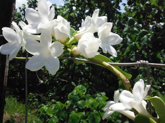 It is really better suited to a greenhouse or conservatory where it looks its best when trailing along a rafter with the clusters of lovely white flowers hanging down delicately.