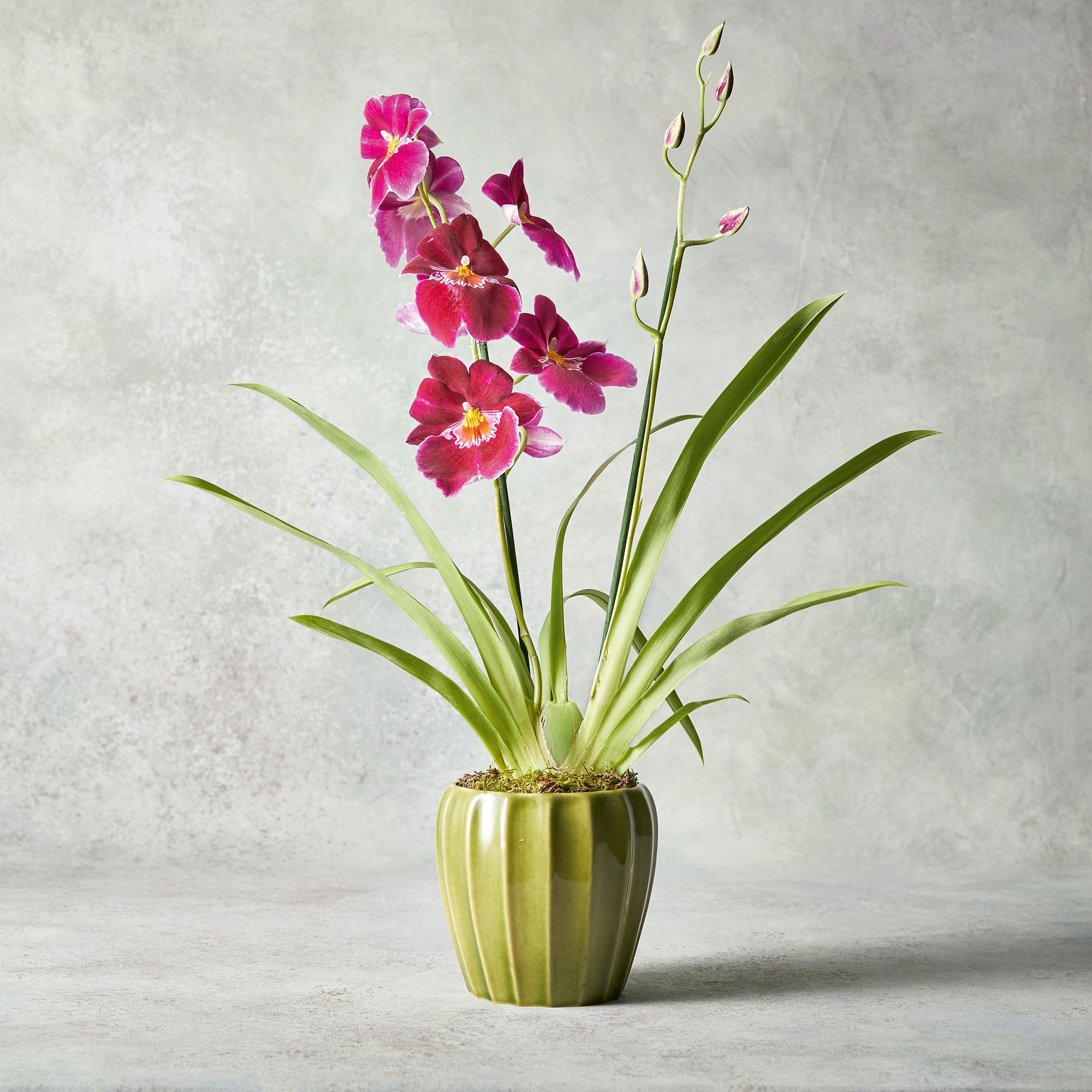 Miltonia orchids have medium sized blooms and narrow flexible leaves.