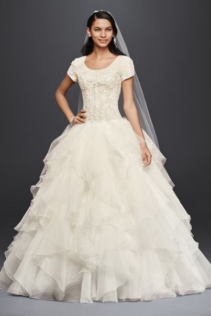 We love the moment when brides know that theyve found the right dress for their wedding day. Browse davids bridal pretty collection of modest wedding gowns including dresses with sleeves conservative styles all at amazing prices. At latterdaybride we carry the best selection of modest wedding dresses in the world. Our bridal gowns are on the cutting edge of fashion gathering inspiration from current styles in the bridal realm so youre never a step behind.