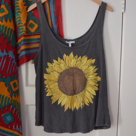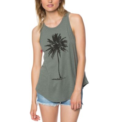 This item is no longer available. Oneill sunflower tank top. Charcoal grey knit sports a plunging scoop neck and back next to carefree tank straps with a fun slightly rounded hem below. Wear them under a button down when its breezy or in the streets when its warm.