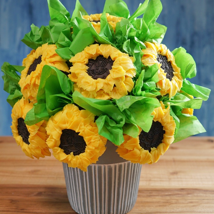 Bake at 350f for 20 25 minutes. Cupcakes 1 and 2 appeared as though i was blindfolded while piping. Line a cupcake pan with cupcake liners and fill each cup 23 of the way full with batter. These sunflower decorated cupcakes are perfect for any spring celebration.