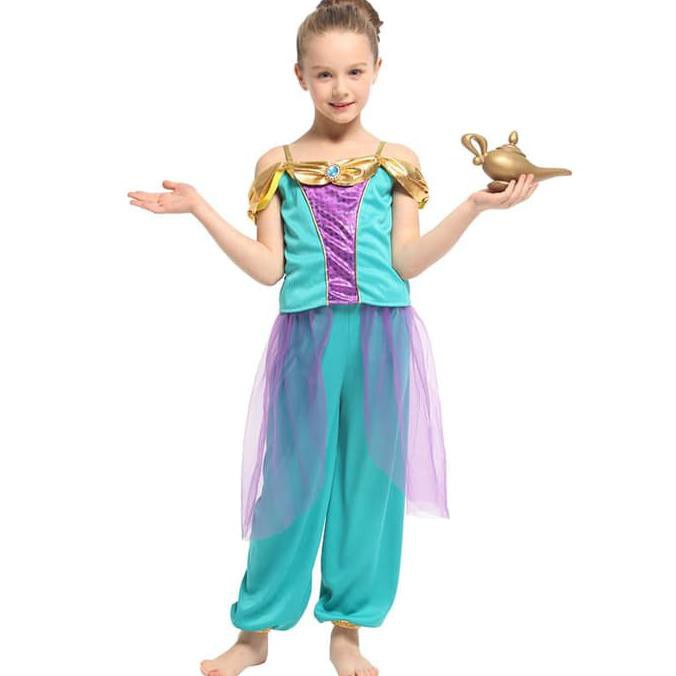 4995 3498 jasmine costume for kids. 90 2499 24. Free shipping by amazon. The ensemble comes with an elaborate turquoise jumpsuit which is garnished with golden accents and elegant mesh in order to give your daughter the regal look of this disney.